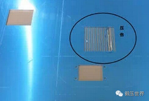 壓傷產(chǎn)生的原因有:來料表面、刀具上或者刀盤轉(zhuǎn)塔上有雜物,刀具帶有磁性,程序排版不合理,刀具上下模的間隙不合理,刀具干涉等。